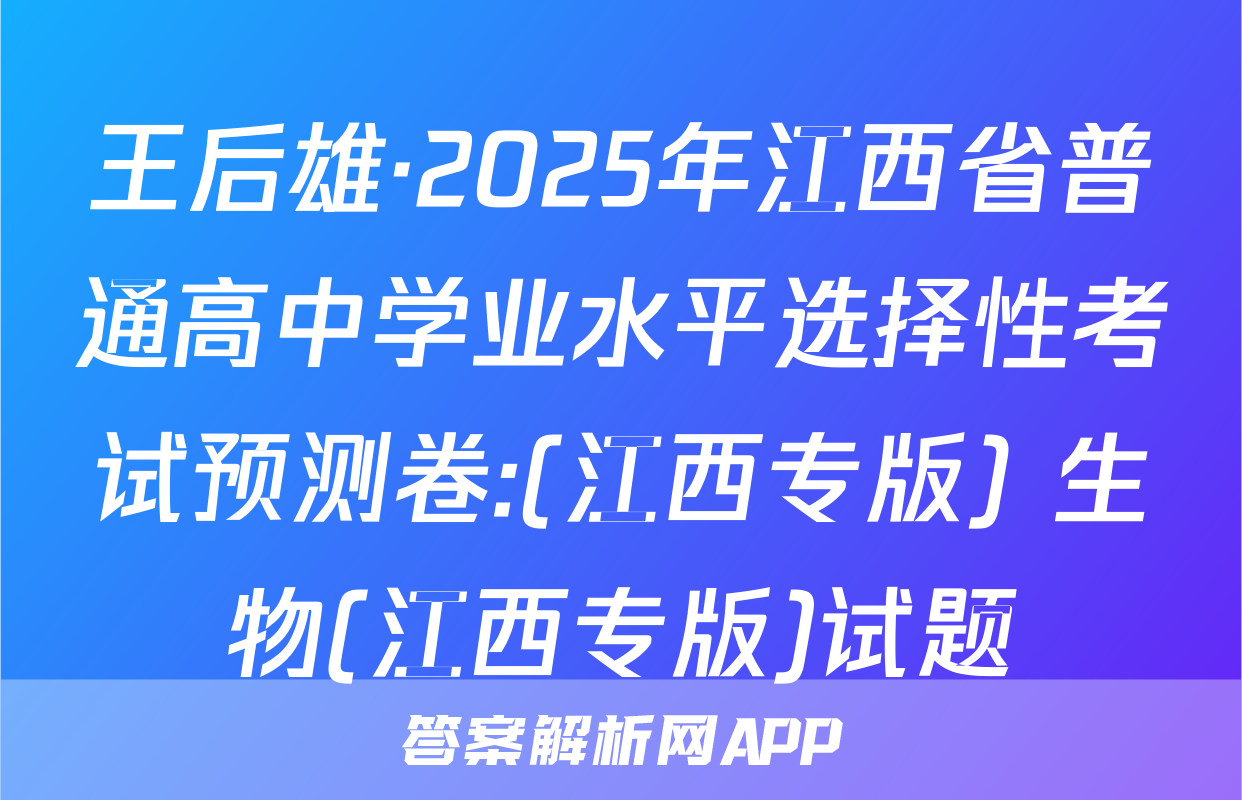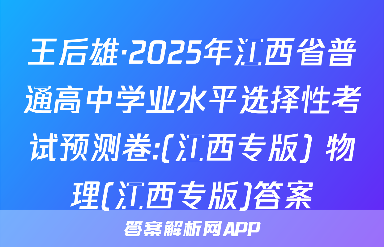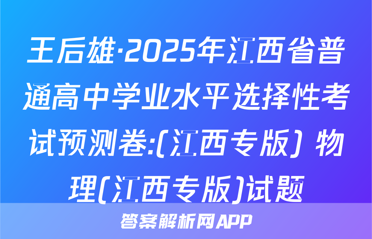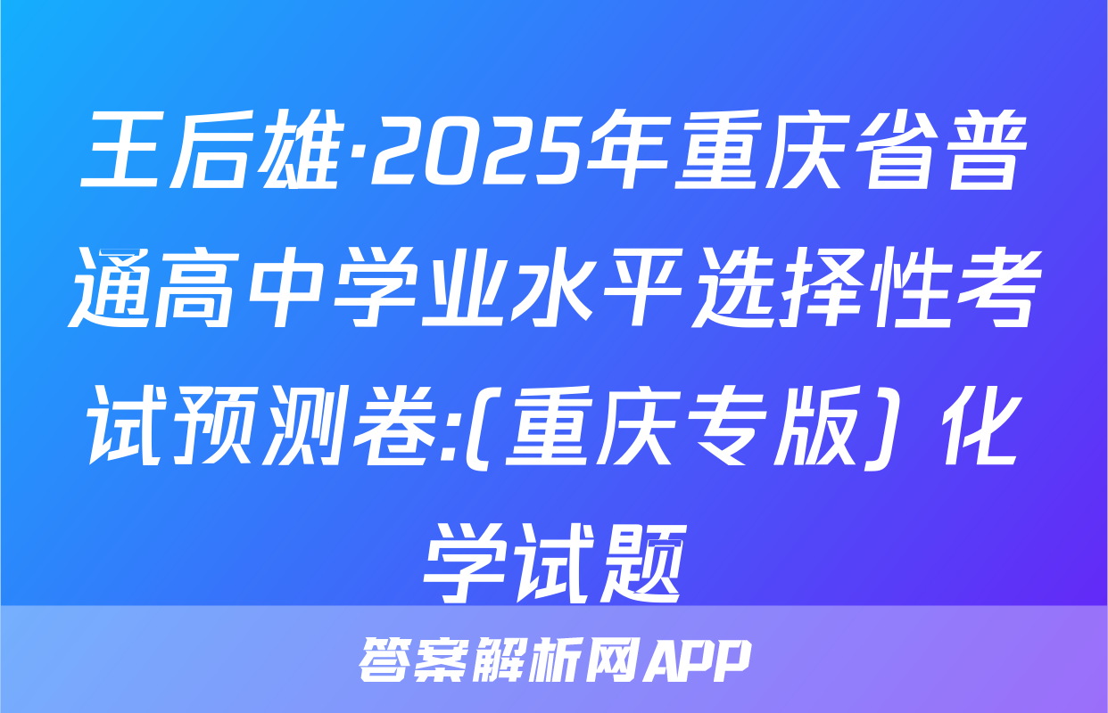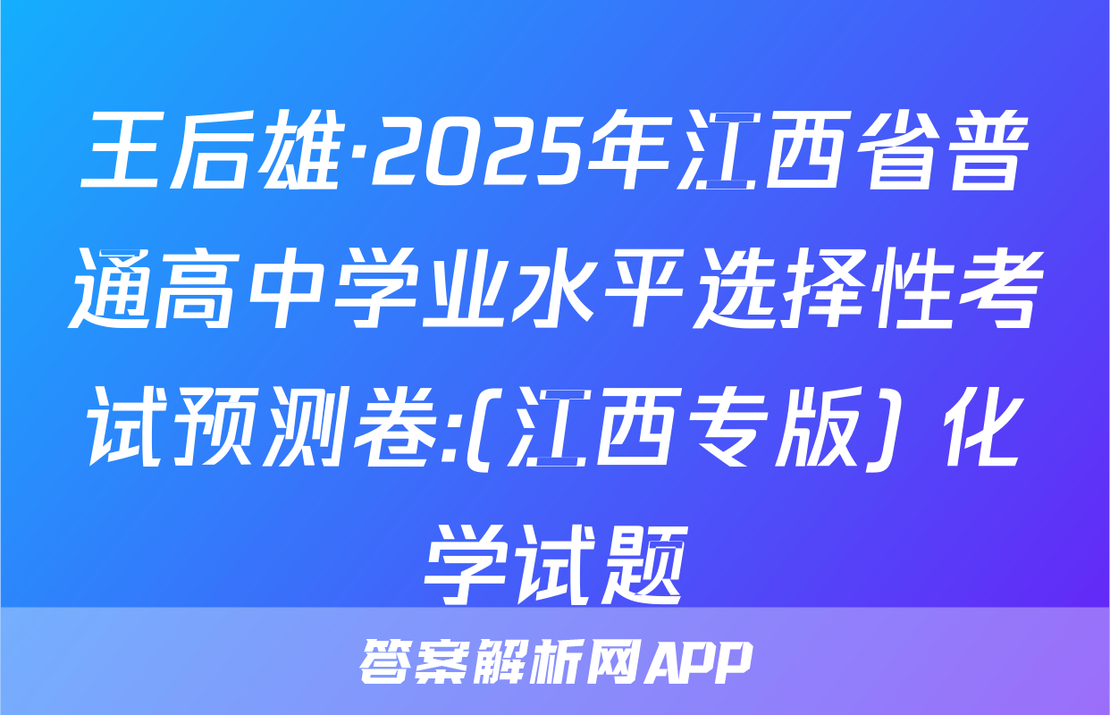 绝密★启用前C.图③装登可用作蒸馏装置D,图④标识表示腐独炎物质2025年江西省普通高中学业水平选择性考试预测卷5,桔霉素是一种真蘭毒素,主要存在于储存的谷物中,其结构简式如图所示。下列有关枯霉素的说法正确的是()化学A分子式为C,H,0,B,能使酸性KMnO,溶液褐色(考试时间:75分绅:试卷满分:100分)C分子中含存1个手性碳原子注意事项:D.1ml该物质与1molB,加成的产物有4种1答题前,考生务必将自已的准考证号、姓名填写在答题卡上。考生要认兵拔对答题卡上粘6.一种常见的有机还原剂的结构如图所示,其中X为原子半径最小的元素,M、Y、Z和W是原子序贴的条形码的“准考证号、姓名、考试科目”与考生本人准考证号、姓名、考试科目是否一致。数依次增大的短周期元素,且W的一种氢化物可用作火箭燃科。下列说法正确的是()2.回答逸择题时,选出每小题答案后,用2B铅笔把答题卡上对应题目的答案标号涂黑。如需A简单离子半径:MW改动,用掠皮擦干净后,弄选涂其他答案恭号。回答非选择题时,将答案写在答题卡上。写在本试B.W的氧化物只有两种卷上无效。CY的最高价含氧酸为强酸3.考试结桌后,将本议卷和答题卡一并交回。D.Z与X能形成多种化合物可能用到的相对原子质量:H-1N一40一16Cu一647,根据下列实验操作与现象能得出相应结论的是)一、选择题:本题共14小题,每小题3分,共2分。在每小题给出的四个选项中,只有一项是符合恋项实验操作与现象结论题目要求的。向苯酚溶液中滴加PcC斗,溶液,溶液显张色含有酚羟基的有机物通Fc马,溶液均显紫色1.古代劳动人民的发明创造是中华优秀传统文化的重要组成部分。下列叙述错误的是()A制造指南针的磁石的主要成分是氧化铁B.青锡器后母成鼎的主要成分是铜锡合金在试管中加人适量淀粉和稀硫酸,加热,一段时间后加人淀粉未水解少量新制的C(0):并加热,未观察到砖红色沉淀C.黑火药的主要成分是硫黄、木炭和硝石D.古朴典雅的青花瓷的主要成分是硅酸盐将CH,C00B溶液滴人M4,C0,溶液中,产生的气体通人2.下列有关物质结构与性质的说法正确的是(酸性:且,C0>H,Si0M4S0,溶液中,产生白色沉淀A.分子的极性:BC>BF)B.就性:Ca(0>Ba(0),C.键角:NH,>PH,D.键能:Si一Si>Si一C0向Na0H溶液中加人,O,溶液并通人@O2,有能使带火H,0具有还原性屋的小木条复燃的无色气体生成3.下列有关物质鉴别的叙述错误的是8.设N,为阿伏加德罗常数的值。下列说法正确的是(A通过灼烧法可区别羊毛和合成纤维A0.1mlSE,分子中硫原子的价电子数为0.6N,B.利用焰色试验可区别KCl溶液和iC溶液B.标准状况下,1L.2LS0,中氧原子的数目为1.5,C.用酸性KMO,溶液可鉴别乙二酸和乙二醇C.1L1mol·LFeC,溶液中阳离子的数目小于N,D.用稀盐酸可鉴别N品,CO,溶液和NaHCO,溶液D.常温下,将46gNO,通人密闭容器中,气体分子数为N4,下列叙述正确的是2工业上一种回收V,0,催化剂的工艺流程如图所示。已知:V0S0,可溶于水,V,0,、NH,V0,微千水。下列说法正确的是键造18王后雄智还原、酸最过说钢催化剂船碎、水浸主婴含V0S0Y:0J过德液2A图①装置可用于测定锌与稀硫酸反应的速率KCIOB图②装置可用作制备氯气的发生装置支捞正版四警画四号四装司磁防盗版江西专版化学试题第1页(共8页)江西专版化学试题第2页(共8页)