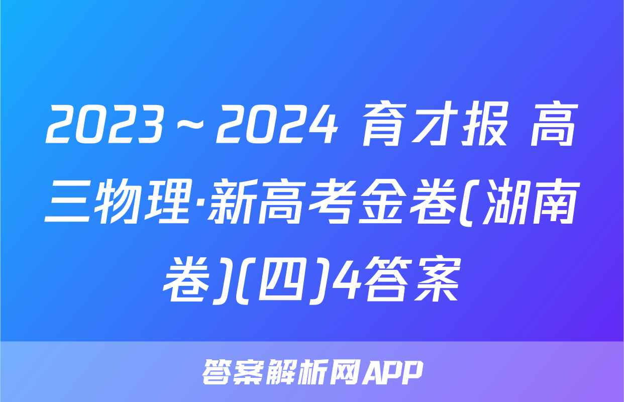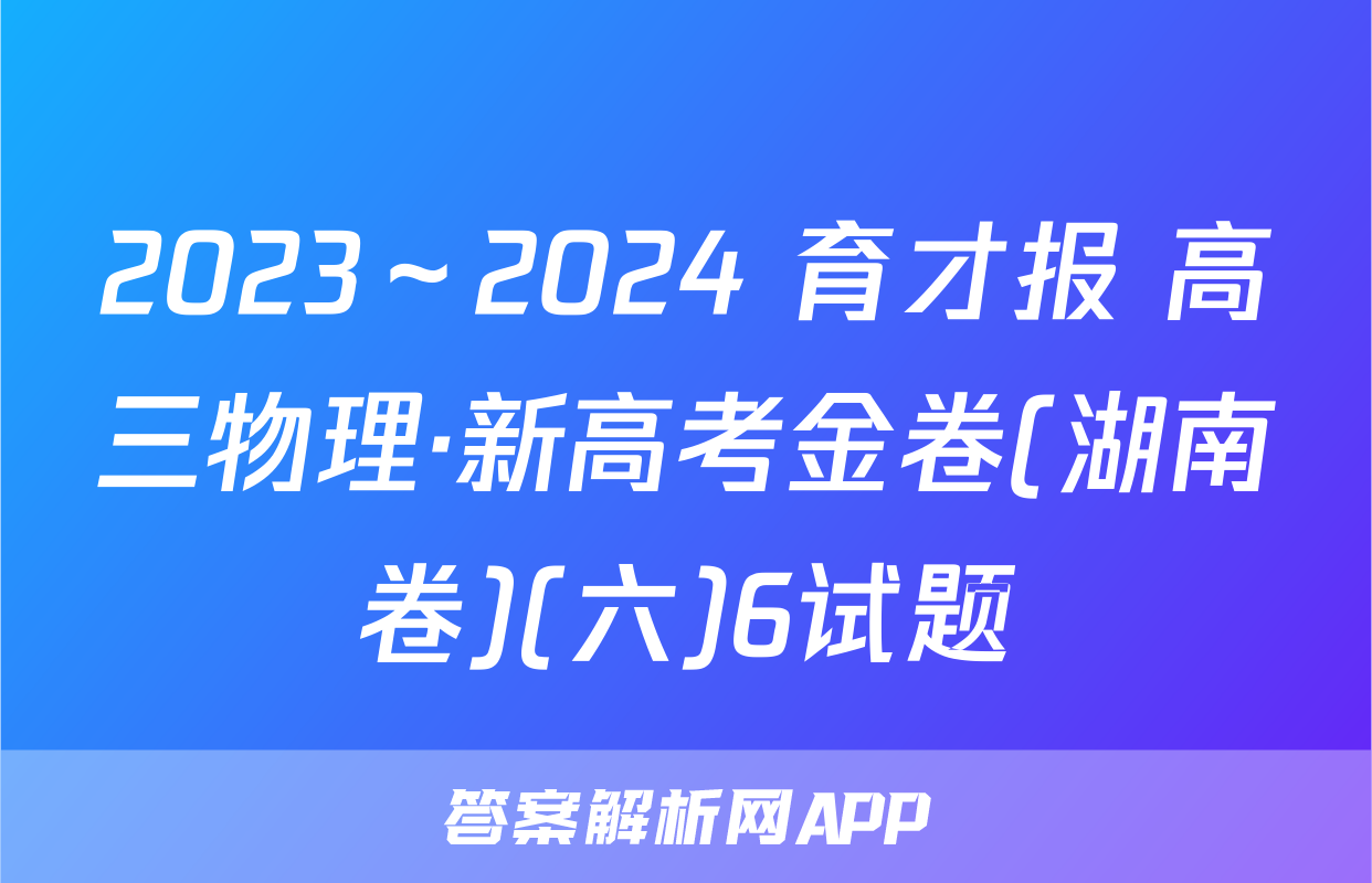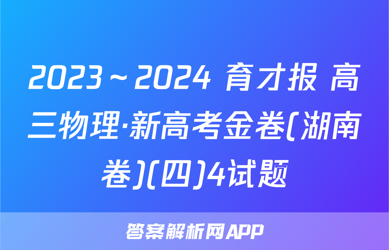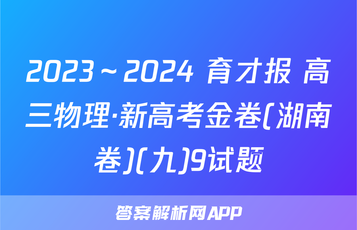 2023~2024学年度【错题本另购-阅卷高三物理·新高考金卷(湖南卷4)必修第册考试时间75分钟,满分100分一、选择题:本题共6小题,每小题4分,共24分。在每小题给出的四个选项中,只端,同时给物块施加一个沿斜面向上的恒定拉力有一项是符合题目要求的。运动到B端,物块运动的时间为4s,物块与传送1.著名数学家苏步青年轻时有一次访问德国,当地一名数学家在电车上给他出了一、速度为10337三06.c372,最大静」道题:甲、乙两人相对而行,相距50千米。甲每小时走3千米,乙每小时走2千米。物块向上运动过程中vt,甲带一条狗,狗每小时走4千米,同甲一起出发,碰到乙后又往甲方向走,碰到甲&.物块加速运动时的加速跨大小为2五mg2)后它又往乙方向走,这样持缕下去,直到甲乙两人相遇时,这条狗一共走了(尸)肤齐郑A.50 kmB.40 kmB.物块加速运动的时间为号C.30 kmD.20 kmC物块匀速运动时,受到的摩擦力大小为42.如图1所示,经过专业训练的杂技运动员进行爬杆表演。质量为60kg的运动员爬D.物块与传送带之间,因摩接产生的热量为20上8m高的固定竖直金属杆,然后双腿夹紧金属杆倒立,头顶离地面7m高,运动员通过双腿对金属杆施加不同的压力来控制身体的运动情况。假设运动员保持如图1所示姿势,从静止开始先匀加速下滑3m,用时15s,接着立即无轮匀永减速下滑,当运动员头顶刚要接触地面时,速度恰好减为零。若不计空气阻力,则17)图4A.运动员下滑的最大速度为4.5ms6.在生产劳动中常遇到这样的场景,四块相同木板!动为诞干装、用F、FB或R其中一种方式使四块木板一起水地面与木板间的动摩擦因数大于木板与木板间的专2来的晶个开袖在南图1滑动摩擦力,则下列判断正确的是A.若工人沿F方向拖木板1,可能使四块木板一上匀速下滑。已知A物体光滑,B物体与斜面间的动摩擦因数为4,整个过程中:B.若工人沿F方向推木板1,只要力足够大,可育斜面始终静止不动。则下列说法正确的是C.若能使四块木板一起缓慢运动,F,可能小于FA.B物体与斜面间的动摩擦因数k=tandD.若能使四块木板一起缓慢运动,F一定大于FB.轻杆对A物体的弹力平行于斜面向下二、选择题:本题共4小题,每小题5分,共20分。C.增加B物体的质量,A、B整体不再沿斜面匀速下滑题有多项符合题目要求。全部选对的得5分,黄D.在B物体上施加一垂直于斜面的力,在A、B整体停止运动前,地面对斜面的0分。摩擦力始终为零7.如图6所示,A、B、C三球的质量均为m,轻质弹B与A球相连,A、B间由一轻质细线连接,B、C间斜面固定在地面上,弹簧、细线与轻杆均平行A于斜面,初始系统处于静止状态,细线被烧的瞬间,下列说法正确的是A.A球的加速度沿斜面向上,大小为2gsin6图2图3心B.C球的受力情况未变,加速度为04.如图3所示,有一长为L的轻杆,一端用光滑的铰链固定在墙上,另一端固定一C.B、C两球的加速度均沿斜面向下,大小均为质量为m的小球B,在距铰链正上方L处有一光滑定滑轮,现用手拉动绕过滑轮、D.B、C之间杆的弹力大小不为0并系在小球B上的细线,使小球B缓慢上移,手对细线的拉力大小为F,杆对小球B的弹力大小为F,重力加速度为g。在移动过程中,下列说法错误的是(8.如图7所示,质量m=04kg的物块停放在水习向上的外力下,使它由静止开始竖直向上做直线A.F不变,Fx减小化关系为F=(6-2)N(时间单位为秒,g取B.F减小,F不变则C.当杆被拉至水平状态时F=V2mg物块向上运动过程一直做加速运动、D.杆对小球B的弹力大小恒为mgB.物块向上运动过程中始终处于超重状态5.如图4所示,倾斜放置的传送带AB长为10m,以大小为0=3ms的恒定速率C.在0~1s内,物块处于超重状态顺时针转动,传送带的倾角0=37°,一个质量为2kg的物块轻放在传送带A:D.在t=2s时,物块的速度为零第1页(共2页)【育才报·高三物理;